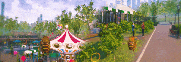 Fly around and explore every nook and cranny of a vast, semi-open world map inspired by New York’s famous Central Park. From ponds to picnic grounds, funfairs to the zoo, you’ll uncover secrets, mini-games, and resources throughout. Find people, animals, plants, and other insects to interact with along the way.