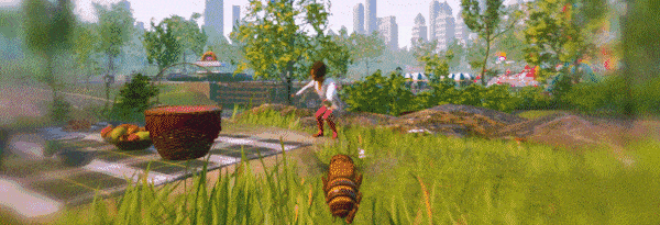 Fly around and explore every nook and cranny of a vast, semi-open world map inspired by New York’s famous Central Park. From ponds to picnic grounds, funfairs to the zoo, you’ll uncover secrets, mini-games, and resources throughout. Find people, animals, plants, and other insects to interact with along the way.